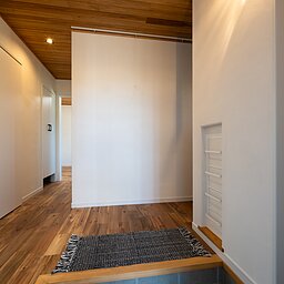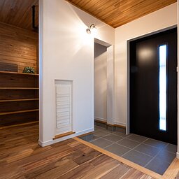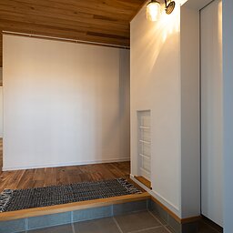人の動きが重なりやすい玄関でも、立つ・座る・出入りする動作が自然に分かれ、家族が同時に使ってもストレスの少ない玄関になりました。