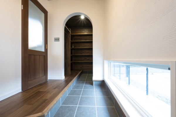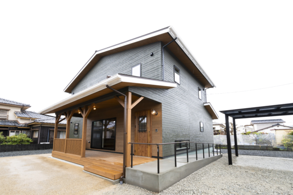<吉野ヶ里町注文住宅:木の香:A様>趣味も家事も、我慢しない。 カバードポーチのある自然素材の家
