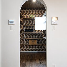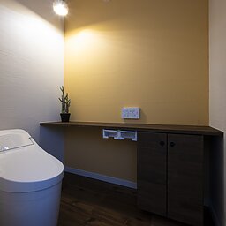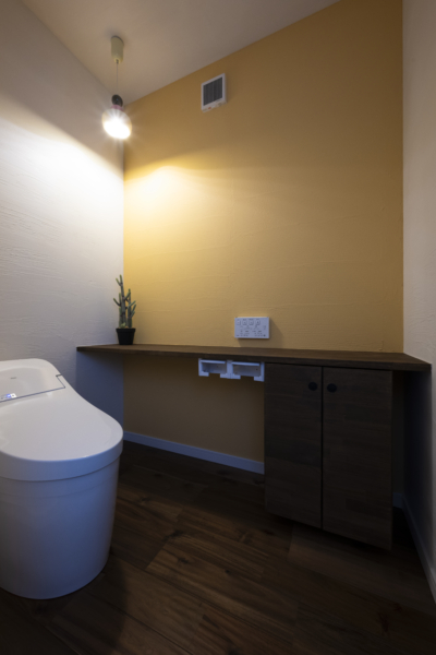 ▼トイレの壁紙や照明で北欧っぱさをイメージ。