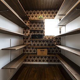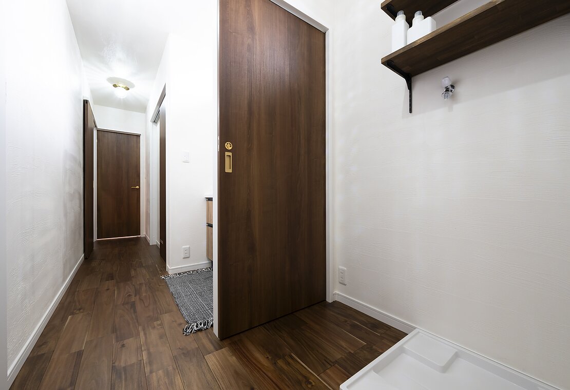 ▼キッチン裏の廊下を無駄なく使い、洗面やトイレなどを配置。