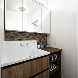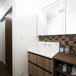 モダンをベースに、照明やタイル使い、壁紙などは北欧テイストをプラスした“ジャパンディ”な空間のお家です。
