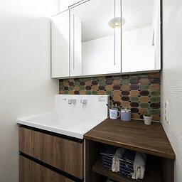 ▼キッチン上のタイルも木の中に北欧っぽい要素もありとても素敵。