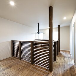 吹き抜けやホールを通して家族の気配を感じられるつくりに。