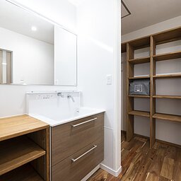下着やタオルなどお風呂で必要なものはこちらの造作棚に収納すれば使い勝手楽々。