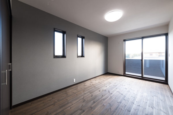 また寝室は、壁の一面だけダークカラーを使用する事で、落ち着いたオシャレを演出しています。