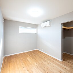 主寝室は6帖。グレーの壁紙も自然素材の壁紙です。
